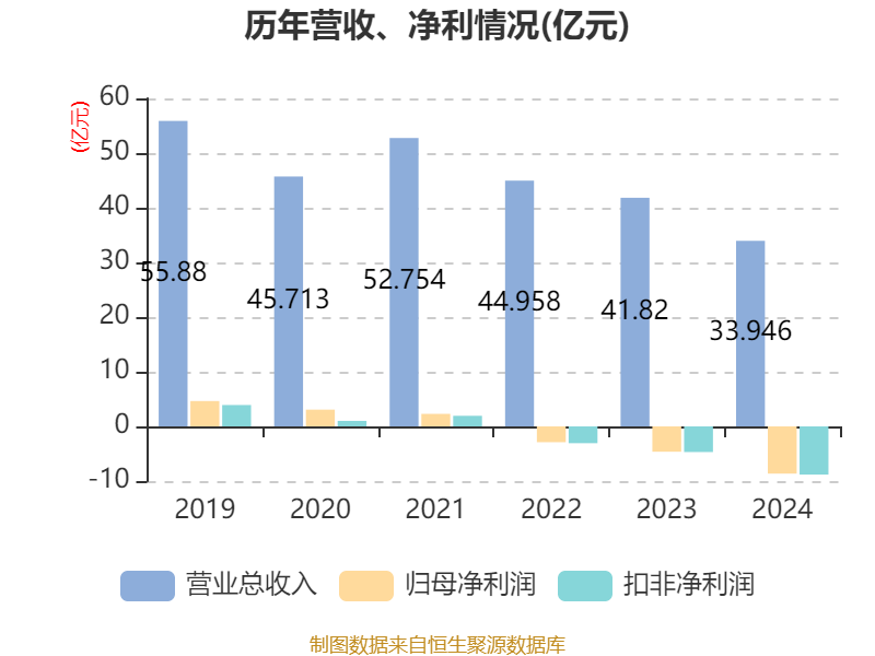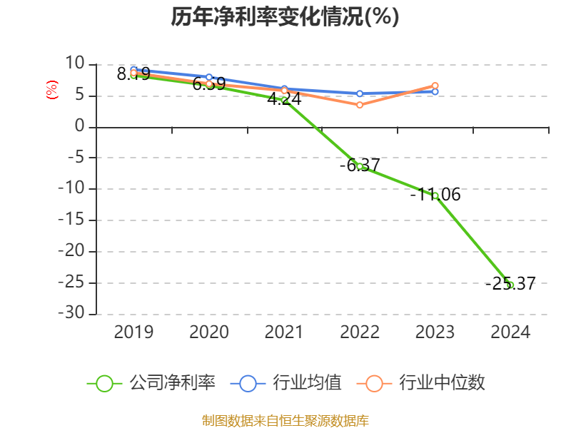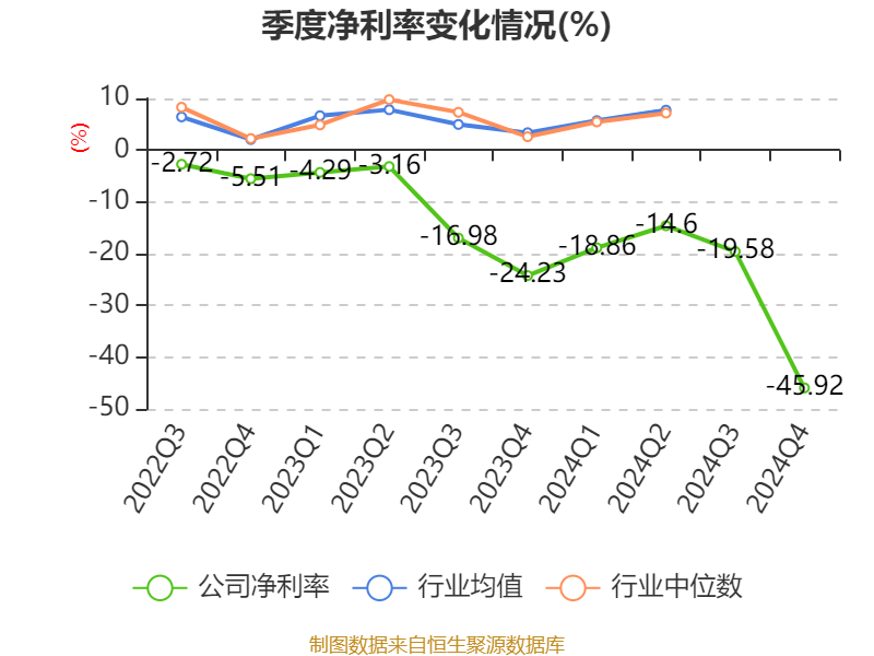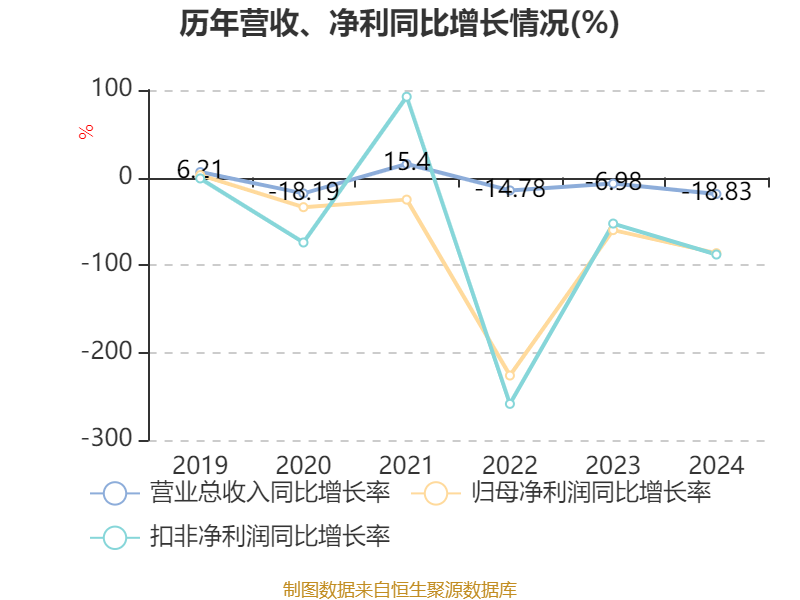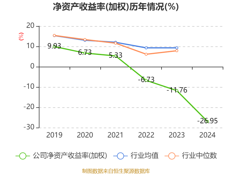 数据显示,2024年公司加权平均净资产收益率为-26.95%,较上年同期下降15.19个百分点。公司2024年投入资本回报率为-11.52%,较上年同期下降6.87个百分点。