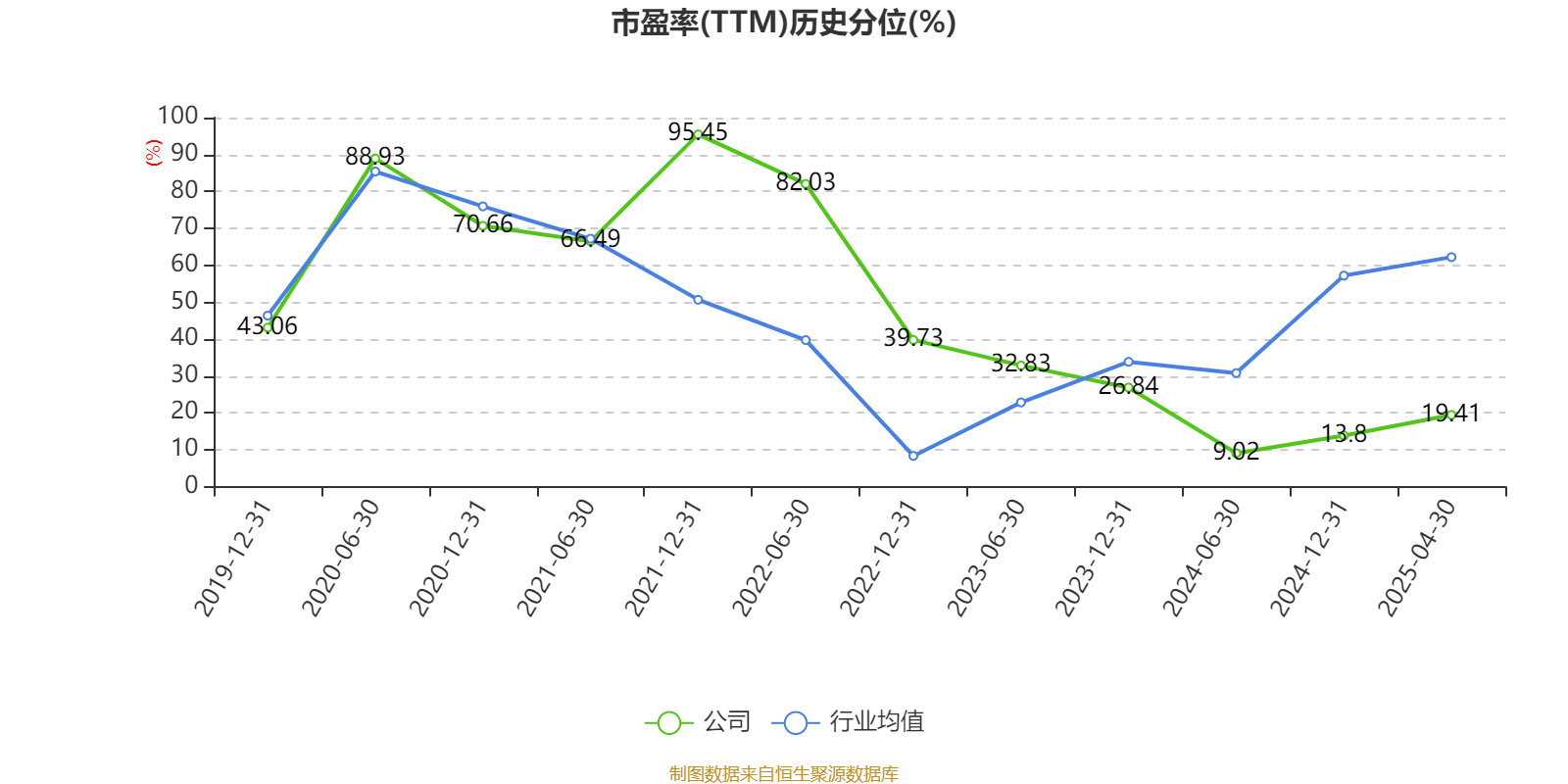 市盈率、市净率为负时,不显示当期分位数,会导致折线图中断。