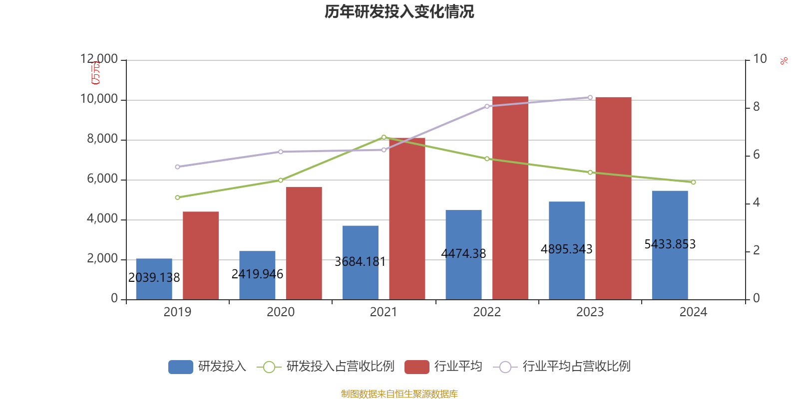 2024年全年,公司研发投入金额为5433.85万元,同比增长11%;研发投入占营业收入比例为4.89%,相比上年同期下降0.41个百分点。