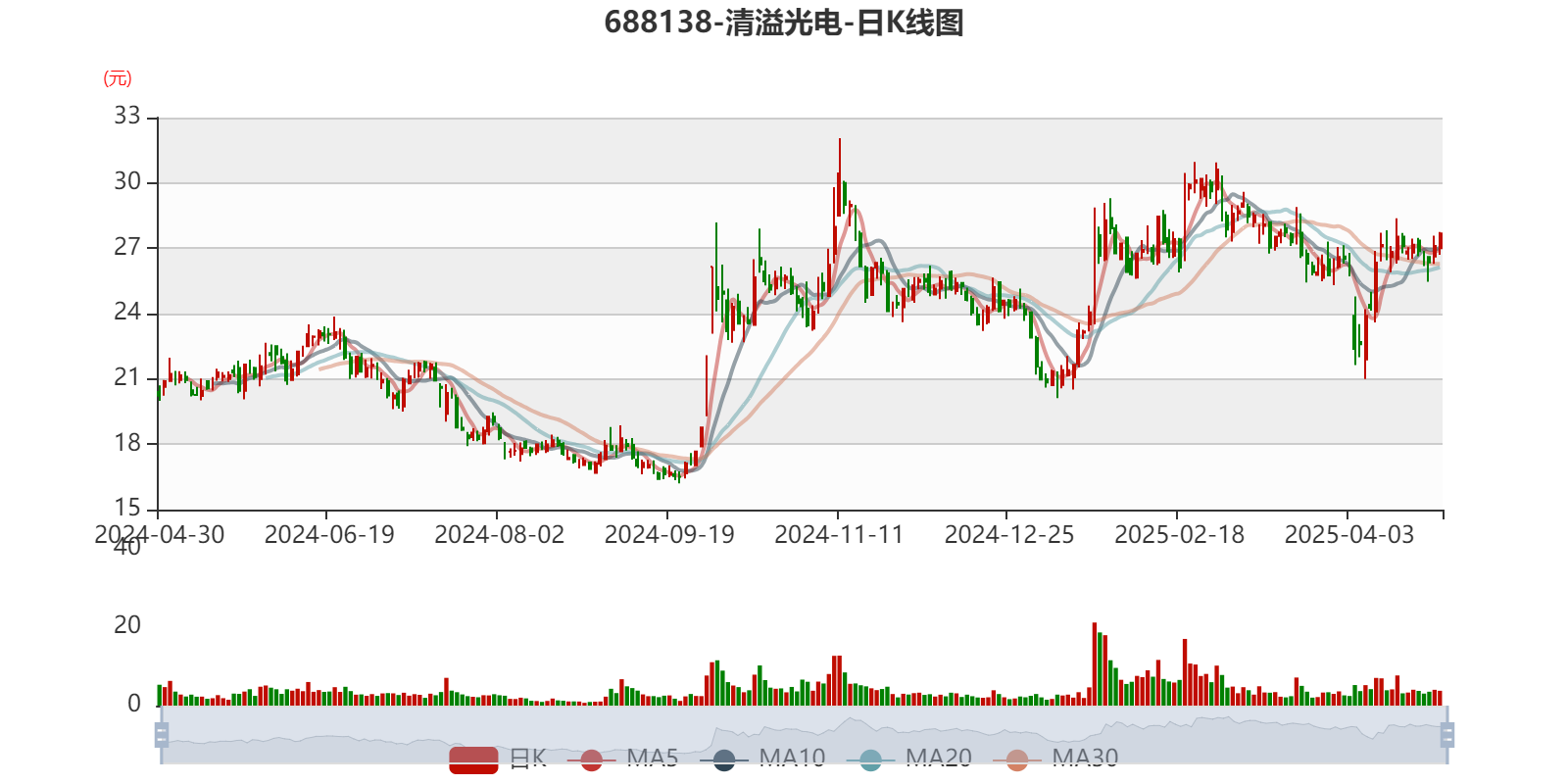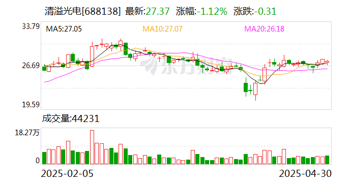 以4月29日收盘价计算,清溢光电目前市盈率(TTM)约为42.93倍,市净率(LF)约4.98倍,市销率(TTM)约6.64倍。