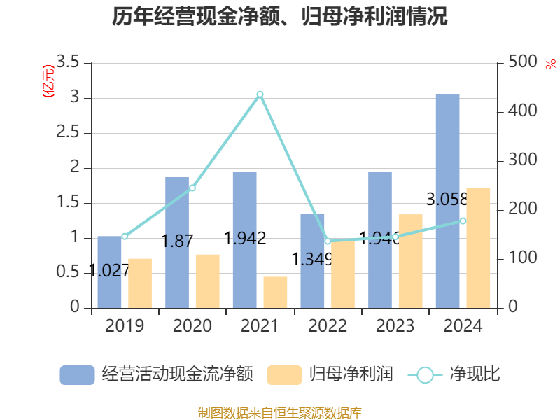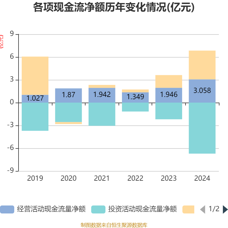 截至2024年,公司经营活动现金流净额为3.06亿元,同比增长57.19%;筹资活动现金流净额3.78亿元,同比增加2.11亿元;投资活动现金流净额-6.72亿元,上年同期为-2.2亿元。