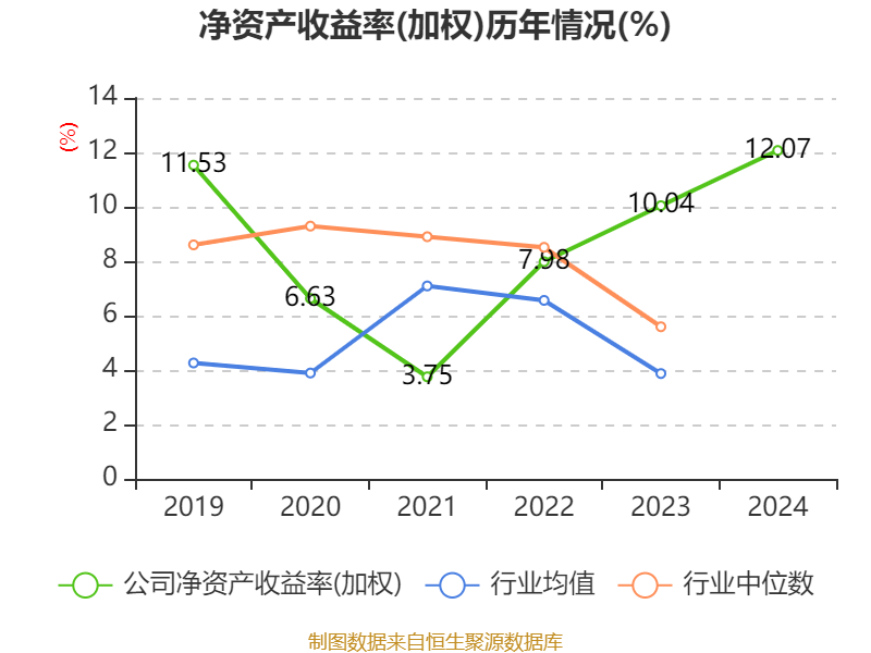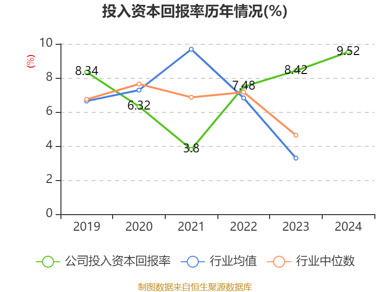 数据显示,2024年公司加权平均净资产收益率为12.07%,较上年同期上升2.03个百分点。公司2024年投入资本回报率为9.52%,较上年同期上升1.1个百分点。