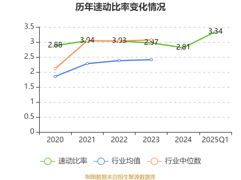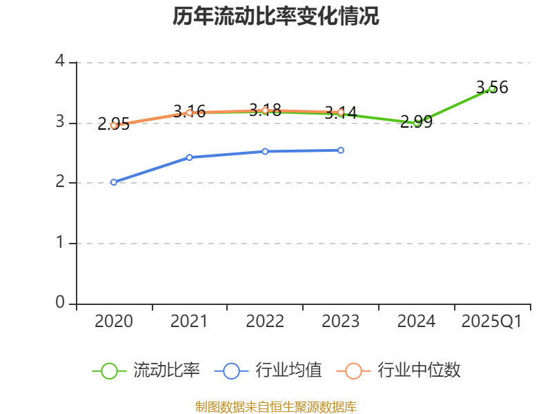 2025年第一季度,公司流动比率为3.56,速动比率为3.34。