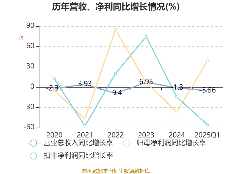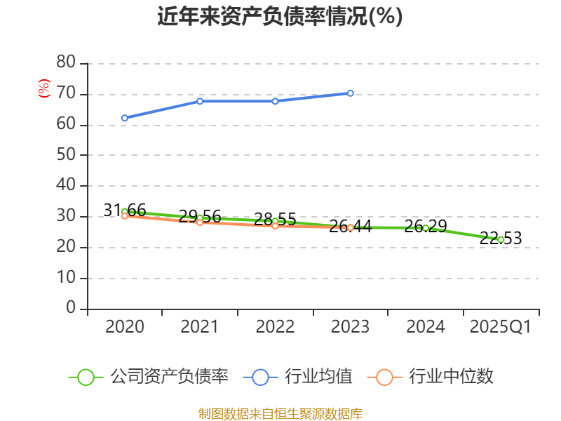资产重大变化方面,截至2025年一季度末,公司一年内到期的非流动资产较上年末增加82.47%,占公司总资产比重上升4.26个百分点;债权投资较上年末减少62.51%,占公司总资产比重下降3.62个百分点;其他非流动资产较上年末增加33.16%,占公司总资产比重上升3.44个百分点;货币资金较上年末减少15.29%,占公司总资产比重下降3.14个百分点。