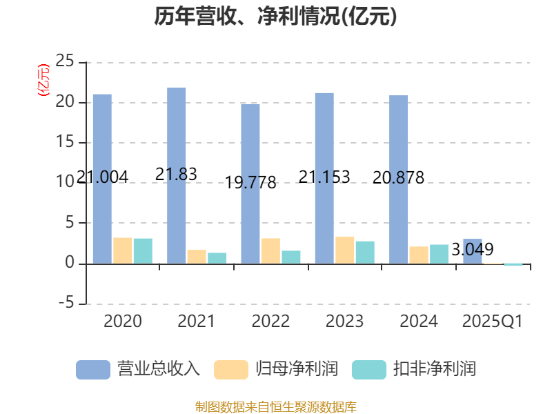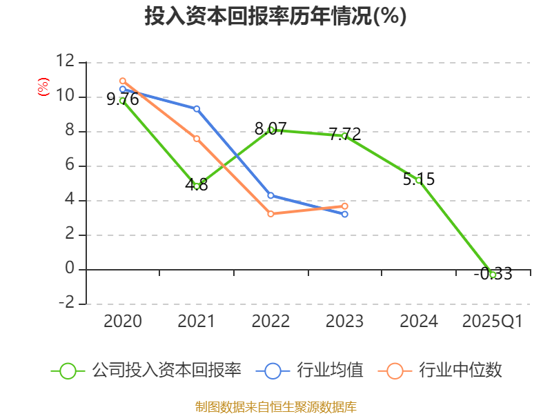 盈利能力方面, 2025年一季度公司加权平均净资产收益率为-0.3%,同比上升0.19个百分点。公司2025年第一季度投入资本回报率为-0.33%,较上年同期上升0.17个百分点。