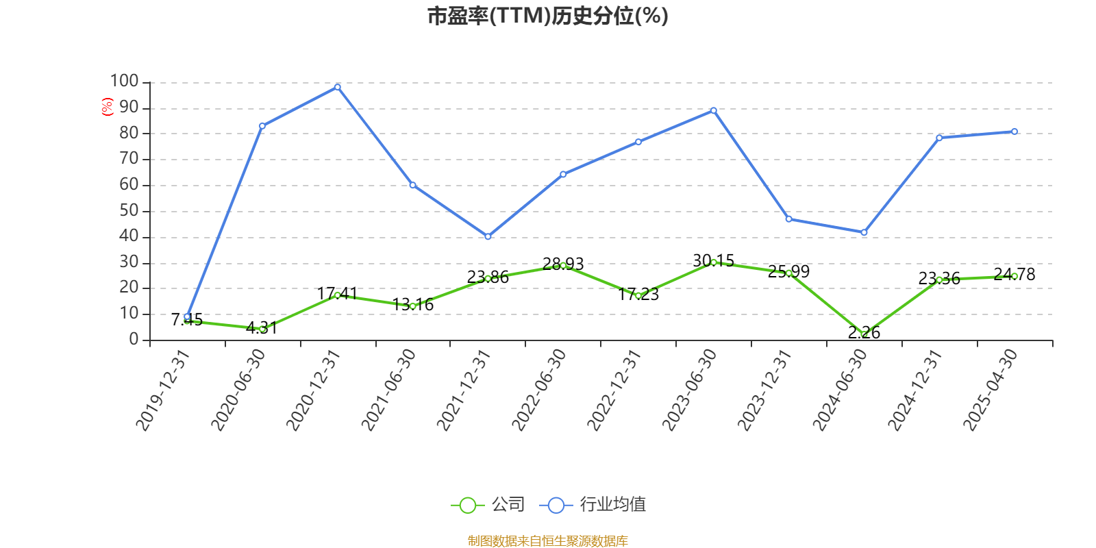 市盈率、市净率为负时,不显示当期分位数,会导致折线图中断。