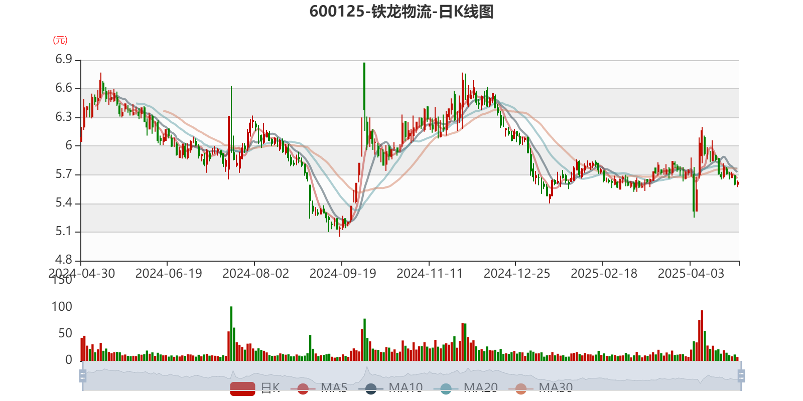 以4月29日收盘价计算,铁龙物流目前市盈率(TTM)约为19.21倍,市净率(LF)约1.01倍,市销率(TTM)约0.56倍。