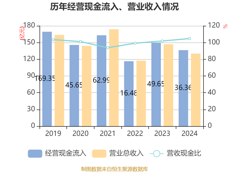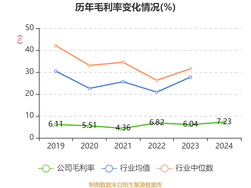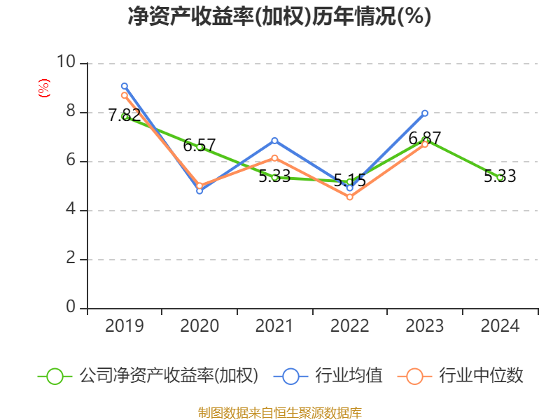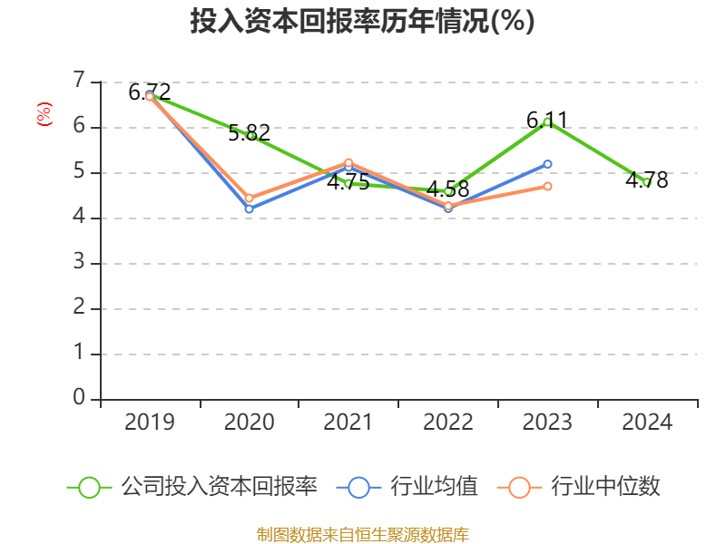 数据显示,2024年公司加权平均净资产收益率为5.33%,较上年同期下降1.54个百分点。公司2024年投入资本回报率为4.78%,较上年同期下降1.33个百分点。
