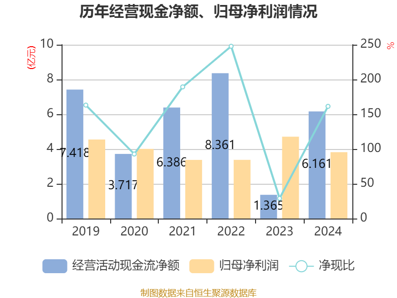 截至2024年,公司经营活动现金流净额为6.16亿元,同比增长351.36%;筹资活动现金流净额-1.74亿元,同比增加9503.33万元;投资活动现金流净额-1.38亿元,上年同期为-1.64亿元。