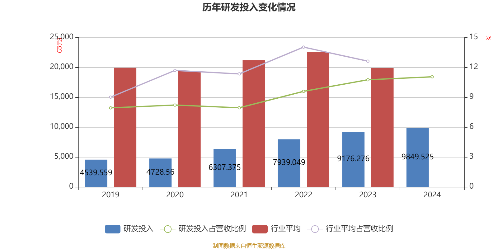 2024年全年,公司研发投入金额为9849.53万元,同比增长7.34%;研发投入占营业收入比例为11.04%,相比上年同期上升0.3个百分点。此外,公司全年研发投入资本化率为0%。