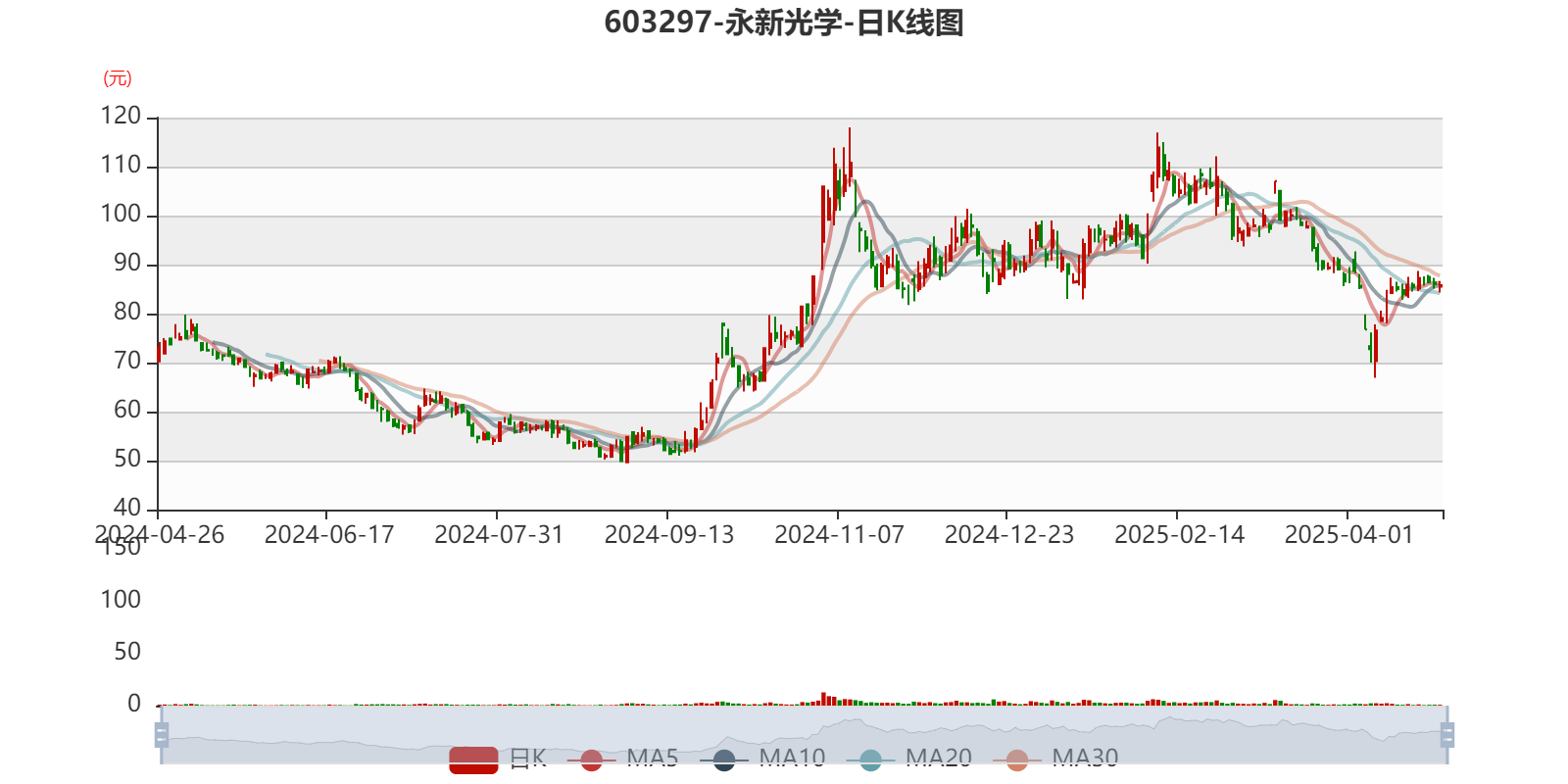 以4月25日收盘价计算,永新光学目前市盈率(TTM)约为45.73倍,市净率(LF)约4.92倍,市销率(TTM)约10.7倍。