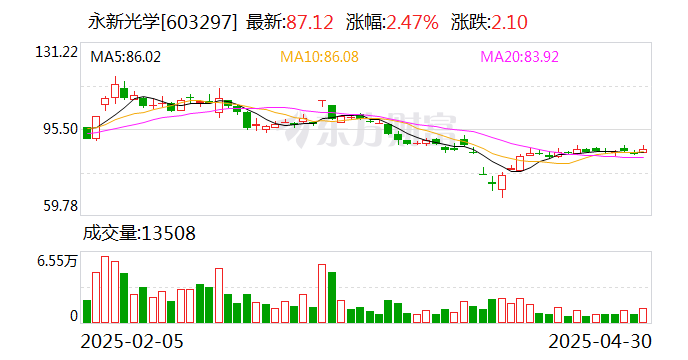中证智能财讯永新光学(603297)4月26日披露2024年年度报告。2024年,公司实现营业总收入8.92亿元,同比增长4.41%;归母净利润2.09亿元,同比下降11.37%;扣非净利润1.85亿元,同比增长14.25%;经营活动产生的现金流量净额为2.63亿元,同比增长20.23%;报告期内,永新光学基本每股收益为1.88元,加权平均净资产收益率为11.22%。公司2024年度分配预案为:拟向全体股东每10股派现8.5元(含税)。
