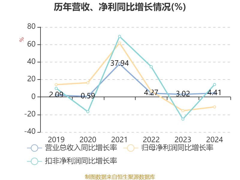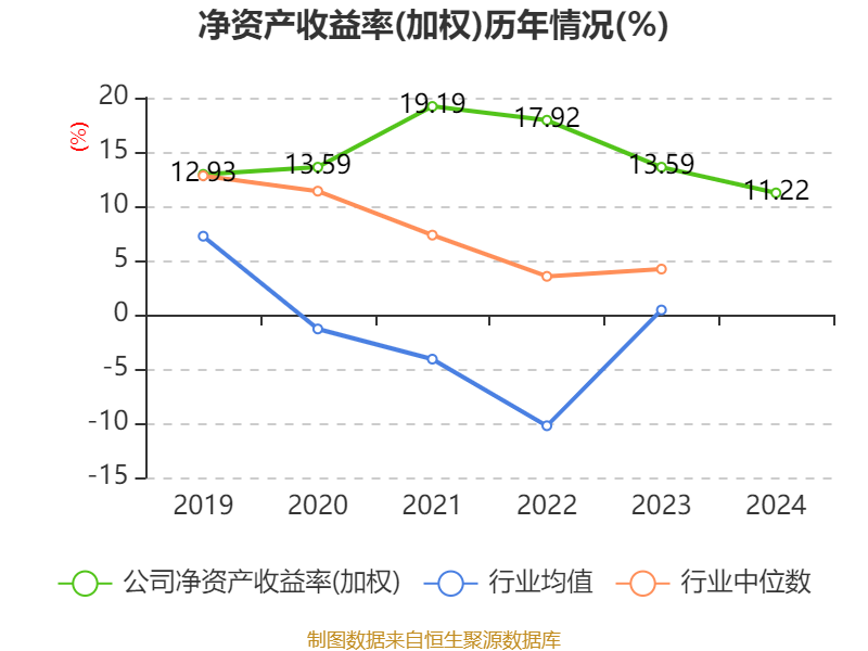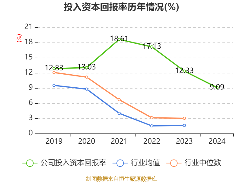 数据显示,2024年公司加权平均净资产收益率为11.22%,较上年同期下降2.37个百分点。公司2024年投入资本回报率为9.09%,较上年同期下降3.24个百分点。