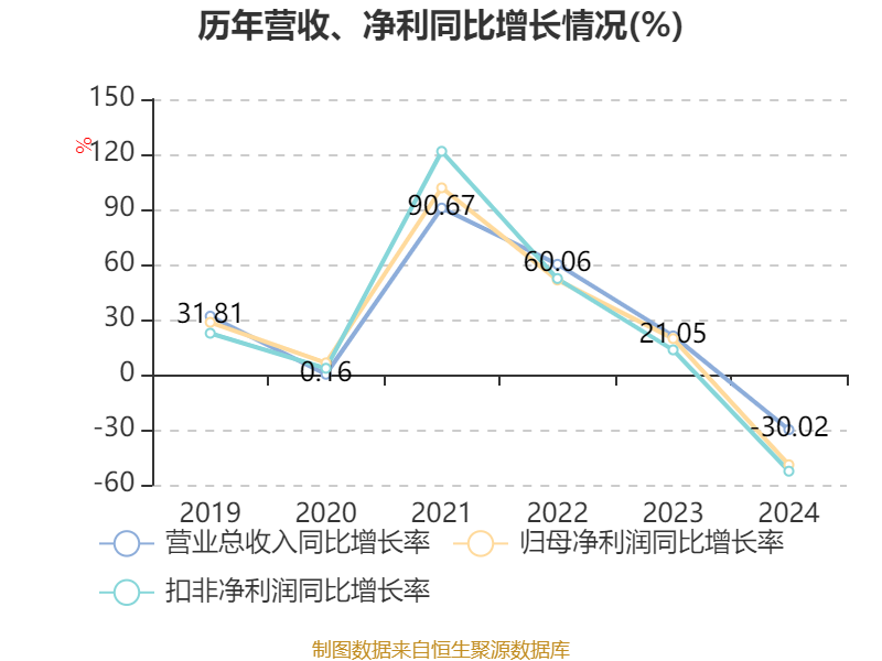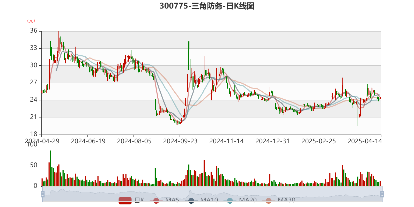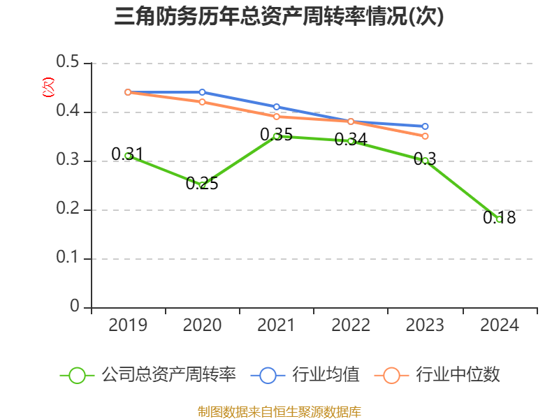 中证智能财讯三角防务(300775)4月29日披露2024年年度报告。2024年,公司实现营业总收入15.9亿元,同比下降30.02%;归母净利润3.8亿元,同比下降49.12%;扣非净利润3.32亿元,同比下降52.63%;经营活动产生的现金流量净额为-5.7亿元,上年同期为-4040.09万元;报告期内,三角防务基本每股收益为0.69元,加权平均净资产收益率为6.80%。公司2024年度分配预案为:拟向全体股东每10股派现2元(含税)。
