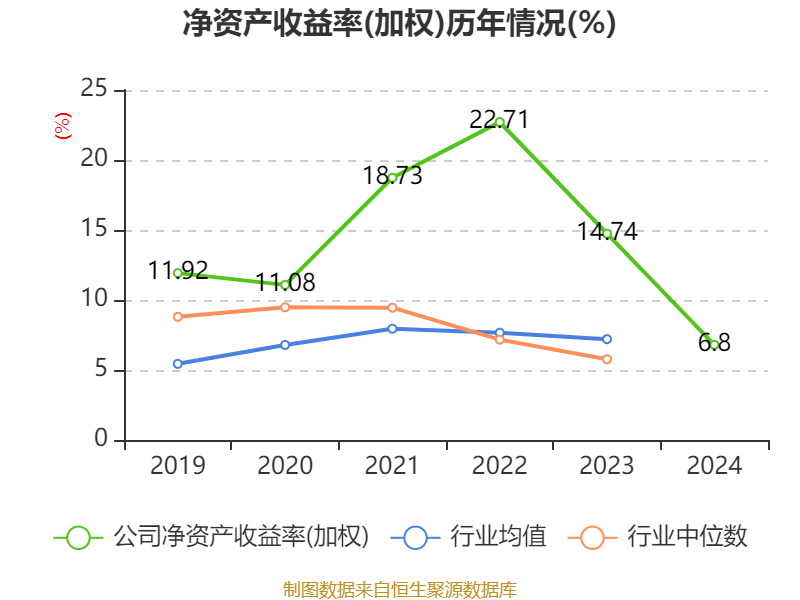 数据显示,2024年公司加权平均净资产收益率为6.8%,较上年同期下降7.94个百分点。公司2024年投入资本回报率为4.6%,较上年同期下降6.58个百分点。