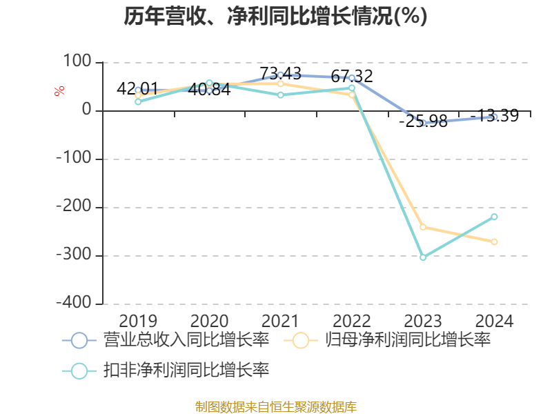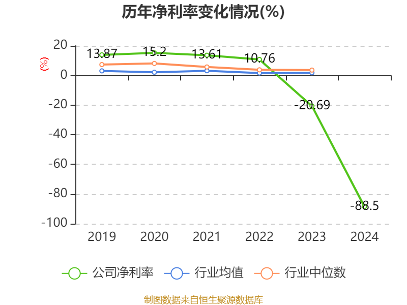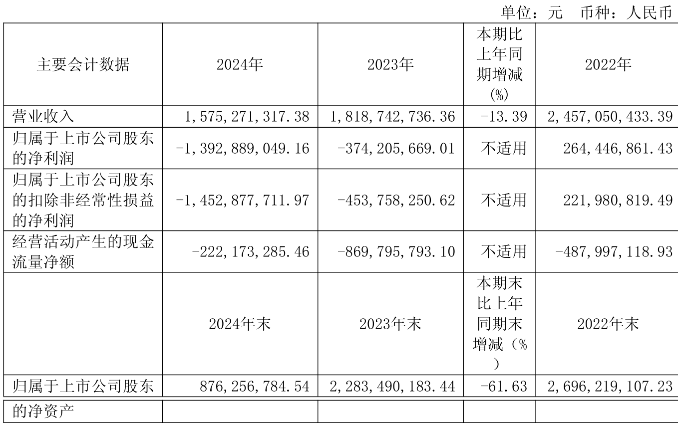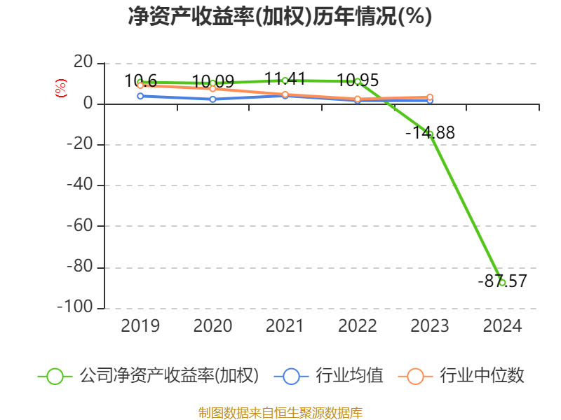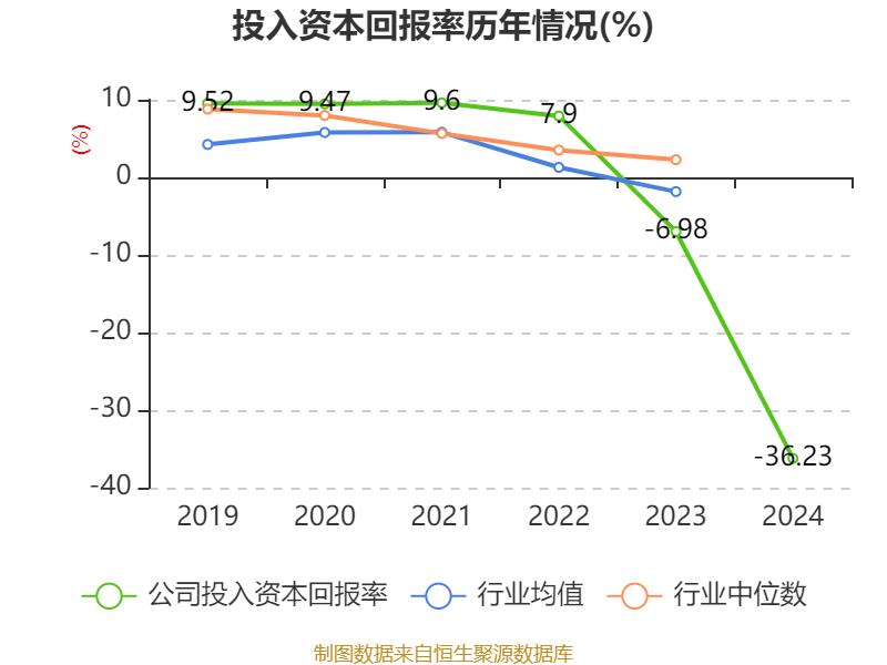 数据显示,2024年公司加权平均净资产收益率为-87.57%,较上年同期下降72.69个百分点。公司2024年投入资本回报率为-36.23%,较上年同期下降29.25个百分点。