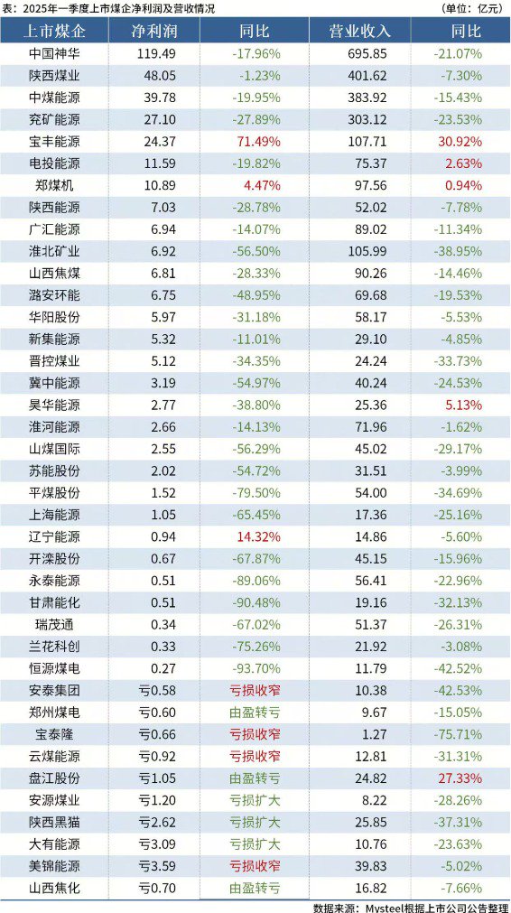 记者仔细查阅上市煤企的年报和一季报发现,其业绩分化特征非常明显。2024年山西中硫主焦煤跌幅达42%,今年一季度继续下跌25%,同时期秦皇岛港5500K动力煤的跌幅分别为14.5%和12.3%。不过,动力煤定价普遍以长协为主,受市场价格波动的影响小。以生产动力煤为主的企业,其经营状况普遍好于焦煤生产企业,如神华、中煤、新集能源等。