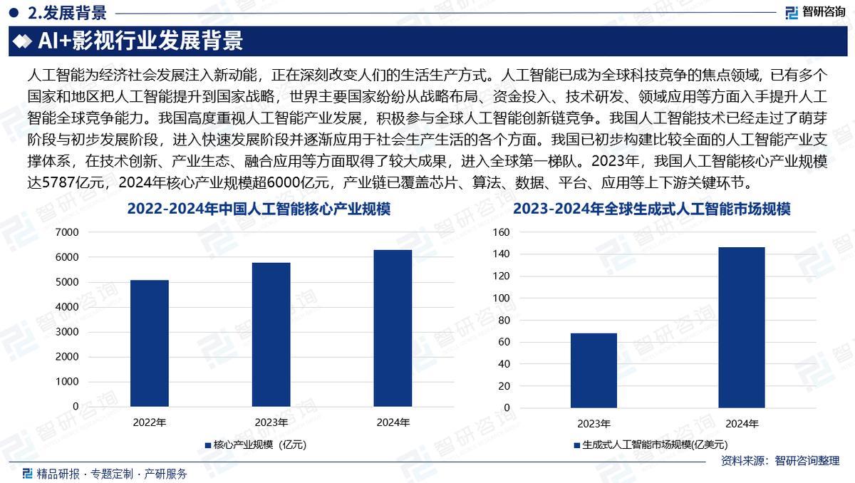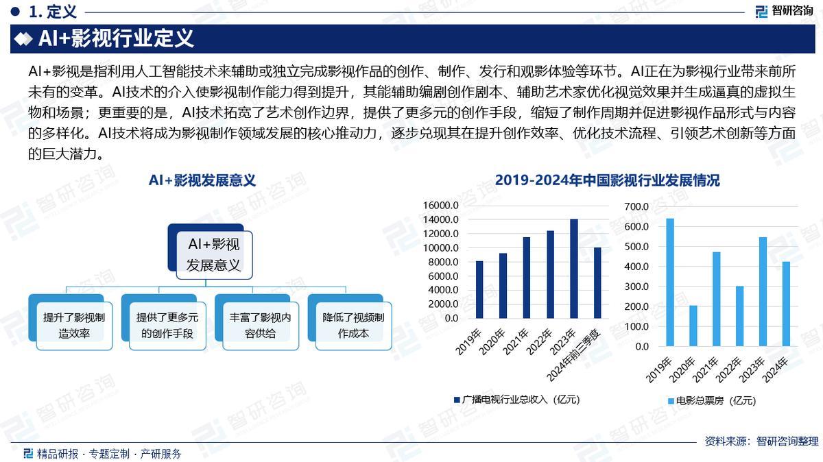 智研咨询专家团队倾力打造的《2025年中国AI+影视行业市场全景评估及前景战略研判报告》(以下简称《报告》)正式揭晓,是企业了解和开拓市场,制定战略方向的得力参考资料。报告从国家经济与产业发展的宏观战略视角出发,深入剖析了AI+影视行业未来的市场动向,精准挖掘了行业的发展潜力,并对AI+影视行业的未来前景进行研判。