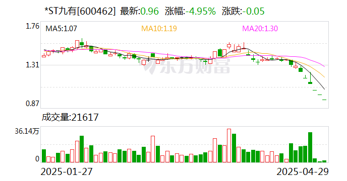 目前,*ST九有仍处于停牌状态,公司市值不足6亿元。截至一季度末,持有*ST九有的股东仍有1.5万名。