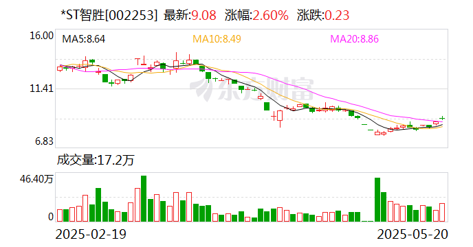 2025年一季度,*ST智胜实现收入2534万元,归母净利润-1273万元。