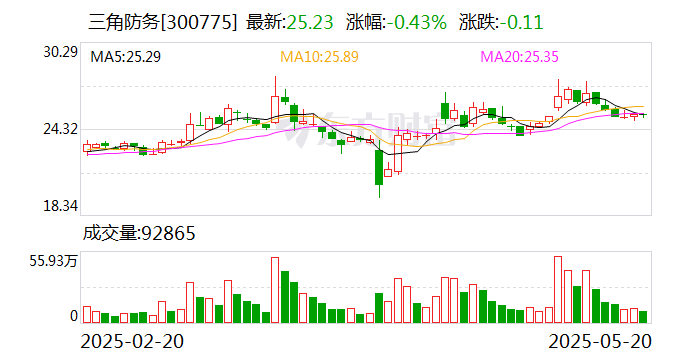 2025年一季度,三角防务实现收入4.03亿元,归母净利润1.29亿元。