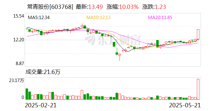 常青股份(603768)今日涨停,全天换手率9.07%,成交额2.86亿元,振幅11.30%。龙虎榜数据显示,营业部席位合计净买入229.41万元。