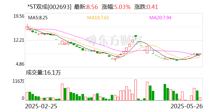 *ST双成再度涨停,8个交易日内录得6个涨停,累计涨幅为30.49%,累计换手率为53.14%。截至9:39,该股今日成交量1500.69万股,成交金额1.27亿元,换手率3.65%。最新A股总市值达35.50亿元,A股流通市值35.20亿元。