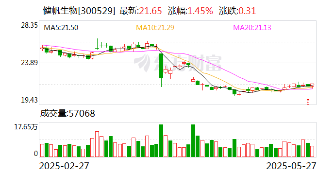健帆生物5月27日大宗交易平台出现一笔成交,成交量51.17万股,成交金额1107.92万元,大宗交易成交价为21.65元。该笔交易的买方营业部为中信建投证券股份有限公司潮州潮州大道证券营业部,卖方营业部为中信建投证券股份有限公司珠海凤凰北路证券营业部。