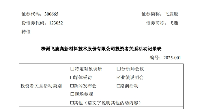 慧正资讯:日前,飞鹿股份发布的最新投资者关系活动记录表显示,飞鹿股份董事长章健嘉、董事兼总裁范国栋等出席业绩说明会。