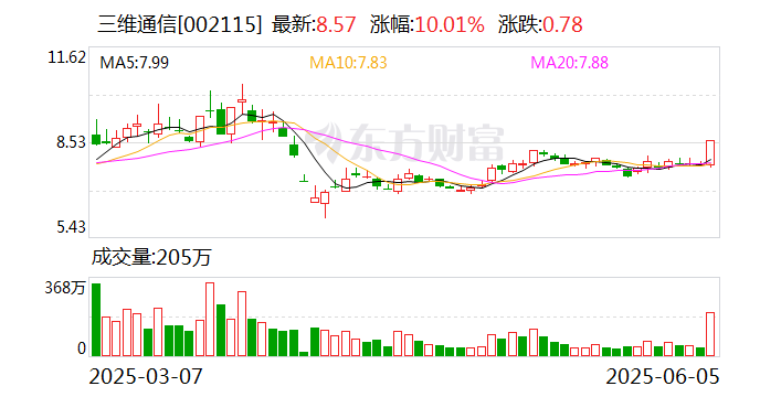 三维通信今日涨停,全天换手率27.26%,成交额17.27亿元,振幅11.15%。龙虎榜数据显示,机构净买入4996.28万元,营业部席位合计净买入8924.76万元。