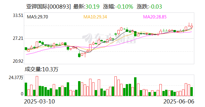 资料显示,亚钾国际投资(广州)股份有限公司业务范围包括谷物贸易、国际船务及基础物流、钾盐开采、钾肥生产及销售等。主营业务为钾盐开采、钾肥生产及销售。