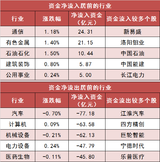 3.通信等行业实现净流入