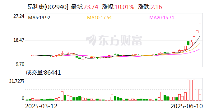 昂利康再度涨停,6个交易日内录得4个涨停,累计涨幅为57.64%,累计换手率为63.89%。截至9:25,该股今日成交量286.78万股,成交金额6808.20万元,换手率1.55%。最新A股总市值达47.89亿元,A股流通市值43.98亿元。
