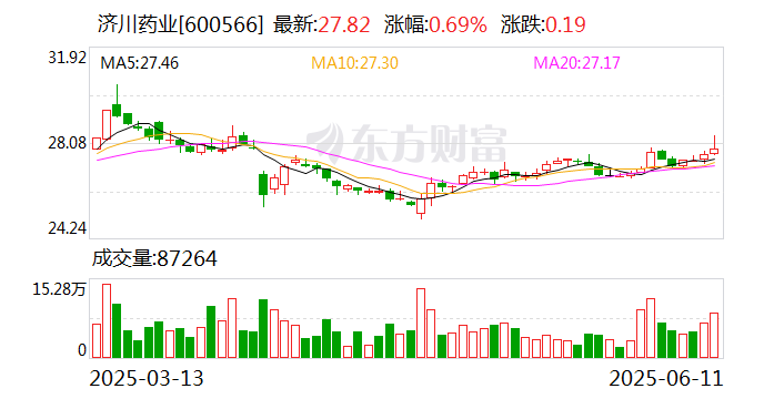 2025年一季度,济川药业实现收入15.25亿元,归母净利润4.40亿元。