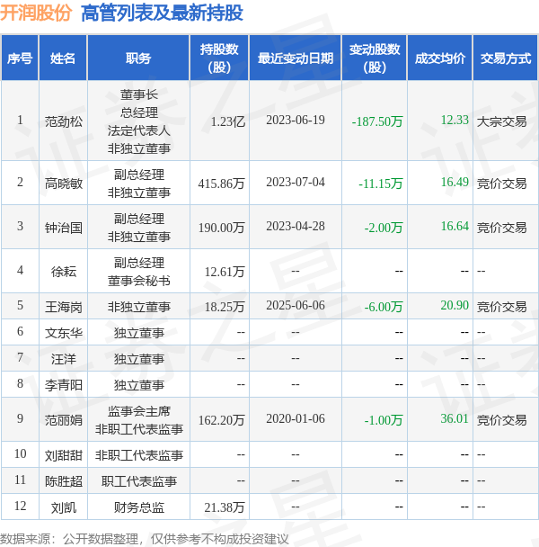 开润股份近半年内的董监高及核心技术人员增减持详情如下: