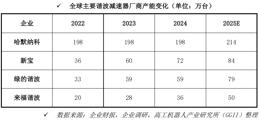 从产能的角度看,过去几年全球范围内谐波减速器产能的扩充主要发生在中国,其中: