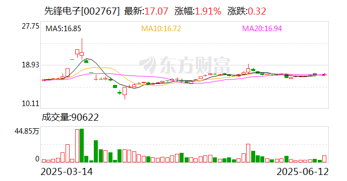 先锋电子(SZ 002767,收盘价:17.07元)6月12日晚间发布公告称,杭州先锋电子技术股份有限公司于近日收到公司董事、董事会秘书兼副总经理程迪尔女士出具的《股份减持计划告知函》,程迪尔女士目前持有公司股份约6.59万股,占公司总股本比例为0.04%,计划在公告披露之日起15个交易日后的3个月内,通过证券交易所集中竞价方式减持公司股份约1.65万股,占公司总股本比例为0.01%。