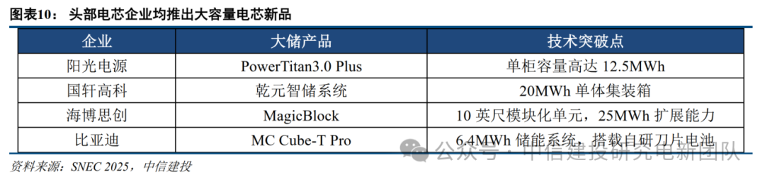 1、储能产品正加速向“大单体制”迭代升级。阳光电源PowerTitan3.0 Plus单柜容量达12.5MWh,刷新全球最高容量记录,国轩高科乾元智储20MWh产品现场拿下3GWh意向订单,海博思创MagicBlock创新采用10英尺标准化单元设计,系统可通过积木式方式扩展至25MWh。整体而言,大容量单体已成为储能系统降本增效的关键路径。