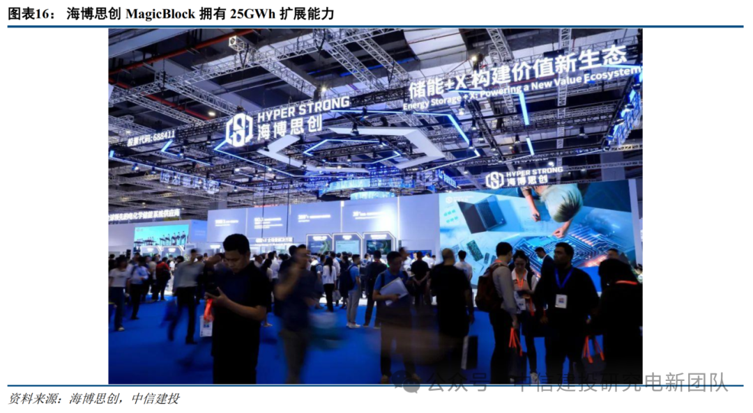 海博思创MagicBlock拥有25MWh扩展能力。MagicBlock平台及其旗舰产品HyperBlock M储能系统创新采用10英尺标准化单元设计,单柜容量达3.125MWh(DC)/3.2MWh(AC),通过1-8个模块的灵活组合,系统可扩展至6.25-25MWh容量范围。此外公司独创"并排+背靠背"立体布局方案,较传统方案可节约30%-50%占地面积,完美解决了城市变电站、工业园区等空间受限场景的部署难题。