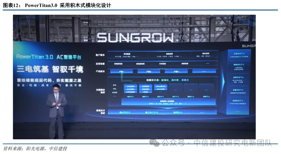 PowerTitan3.0以平台形式发布,供客户灵活配置。PowerTitan3.0将三电融合底层技术拆分成N个功能模块,并依托全球化的仿真、智造、检测、实验、数据等综合实力支撑,实现了“积木式”模块化设计,可供客户灵活搭配组装。产品跨越2~12h,满足-40℃到55℃极温,海拔5000米不降额,可覆盖全球不同构网场景。此外,公司同步发布整站AC智储平台,实现了从设备级到系统级的协同优化,进一步提升整体能量管理效率和电站运营性能。
