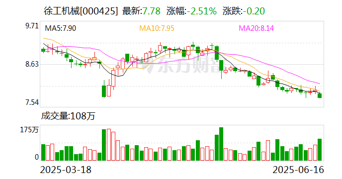 徐工机械主要从事土方机械、起重机械、桩工机械、混凝土机械、路面机械、高空作业机械、矿业机械、环卫机械、农业机械、应急救援装备和其他工程机械及备件的研制销和服务工作。2025年第一季度,公司实现营业总收入268.15亿元,同比增长10.92%;归母净利润20.22亿元,同比增长26.37%。