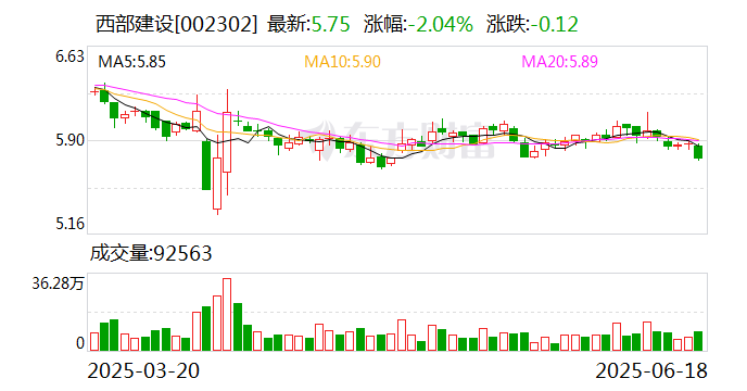 西部建设(SZ 002302,收盘价:5.75元)6月18日晚间发布公告称,本次利润分配方案以2024年12月31日公司总股本约12.62亿股为基数,向全体股东每10股派发现金红利1.25元(含税),共派发现金红利约1.58亿元,送红股0股(含税),不以公积金转增股本。股权登记日为2025年6月25日。除权除息日为2025年6月26日。