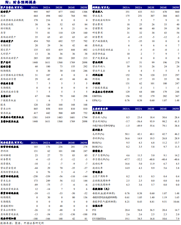 2023H1公司营收1.99亿元,同比+16.13%;扣非前后归母净利润0.35、0.23亿元,同比-30.34%、-36.50%。2023Q2营收1.11亿元,同比+16.10%;扣非前后归母净利润0.21、0.15亿元,同比-23.36%、-29.14%。因粉剂产能尚未完全释放,我们下调2023-2025年归母净利润预测至1.00\1.79\2.48亿元(前值1.60\2.18\3.05亿元),对应EPS预测 0.60\1.07\1.48 元,当前股价对应36.5\20.4\14.7倍PE,新国标订单和国际订单有望改善,维持“买入”评级。