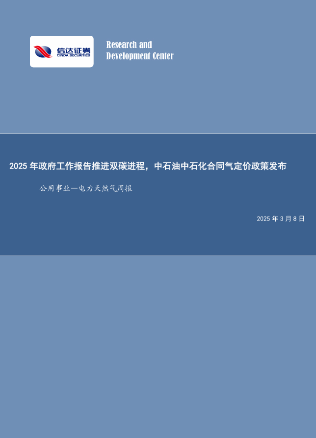 本文源自报告:《电力天然气周报:2025年政府工作报告推进双碳进程,中石油中石化合同气定价政策发布》