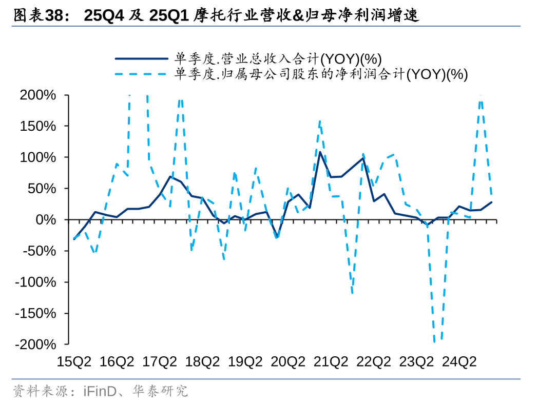 客车出口表现良好,25Q1出口同比+8%至3.4万辆,24Q4/25Q1板块营收分别同比+49.5%/+5.1%,归母净利分别同比+803.7%/24.4%。货车板块,受基建投资同比增速放缓及运价偏低等影响,国内终端销量有所下滑,24Q4/25Q1营收分别同比-6.2%/-4.9%,归母净利润分别同比-176.1%/-26.5%,但细分来看出海及新能源渗透仍有亮点。25Q1摩托外贸出口高增,出口量同比+27.6%至292.7万辆,带动板块营收同比+28.4%,归母净利同比+38.2%;出口结构来看,200及250系列出口增速较高,排量升级,并且对新兴市场出口增速较快,对墨西哥/巴西出口量同比+40%/+124%。