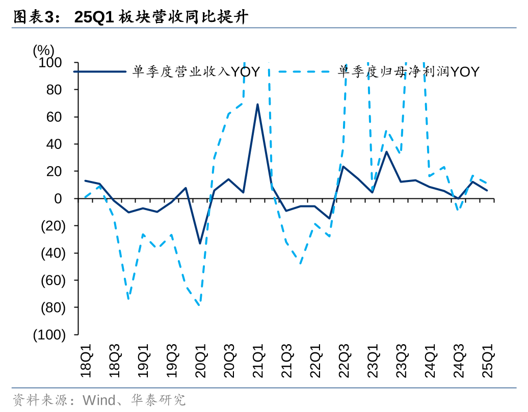 25Q1板块营收同比+8.6%,归母净利润同比增长8.2%,环比增长39.9%。行业毛利率为18.1%,同环比-0.9/+0.2pct;净利率为6.2%,同环比-0.2/+1.9pct。