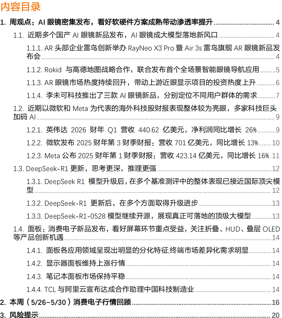 1. 周观点:AI眼镜密集发布,看好软硬件方案成熟带动渗透率提升