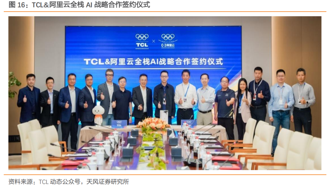 未来星智大模型将成长为TCL华星研发与制造的“最强大脑”及AI Agents中心。TCL聚焦B端与C端积极推进AI应用落地,涵盖从研发、制造到运营等多个场景。在去年12月的TIC大会上,TCL发布“TCL全领域全场景AI应用解决方案”,该套AI应用解决方案从研发、制造到运营,从交互、画质到平台,全方位赋能企业服务端与消费者端应用场景。2024年TCL通过推进落实AI应用,创造经济效益达5.4亿元。