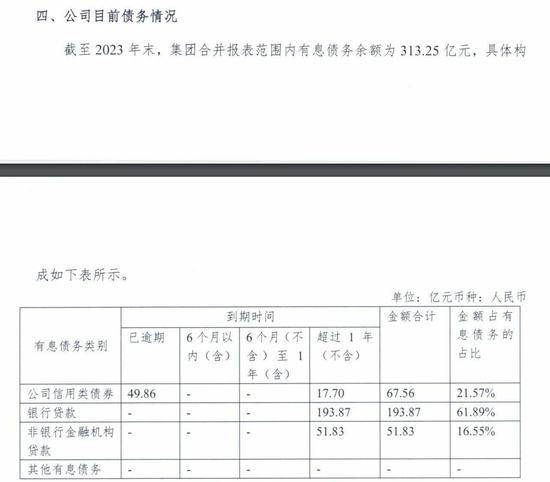 自债务危机以来,三胞集团多次发布债务重组进展。最近的2024年6月28日,其公告显示,截至 2023 年末,集团合并报表范围内有息债务余额为 313.25 亿元。其中银行贷款达到193.87亿元,占比61.89%,信用类债券总额67.56亿元,已逾期49.86亿元。