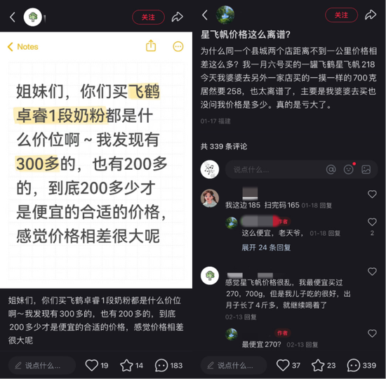 以飞鹤为例,直到如今,仍有不少消费者表示该品牌奶粉价格混乱,有时差价甚至将近百元。